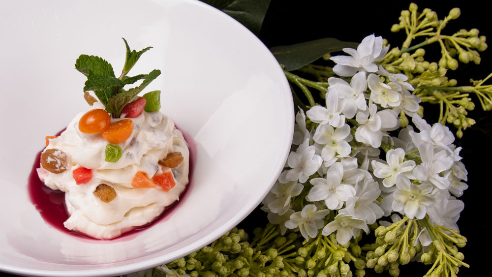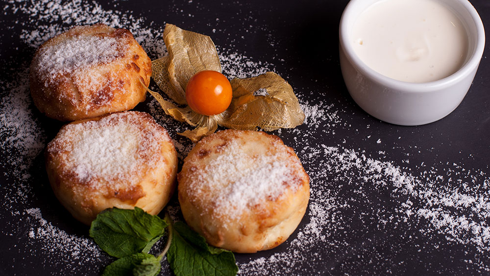 Для любителей творожных блюд припасены сырники с медовой сметаной (250 р.), блинчики с рикоттой и вареньем (390 р.) и творожная масса с изюмом, цукатами и фундуком (240 р.).