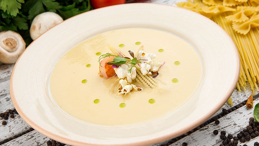 Из новинок предлагают весенние салаты с форелью и грейпфрутом в горчично-медовом соусе (659р.) и с копченым угрем и апельсиновым соусом (539р.). Среди новых блюд также стоит выделить: крем–суп из кукурузы с креветкой и попкорном (439р.); паста Орекьетте с говядиной в сливочно-грибном соусе (629 р.); ризотто с шафраном, гребешками, тунцом и кальмарами (799р.); рулька ягненка с бобами и чечевицей в пикантном томатном соусе (1349р.); форель с капустой Пак-чой в сливочном соусе (939р.).