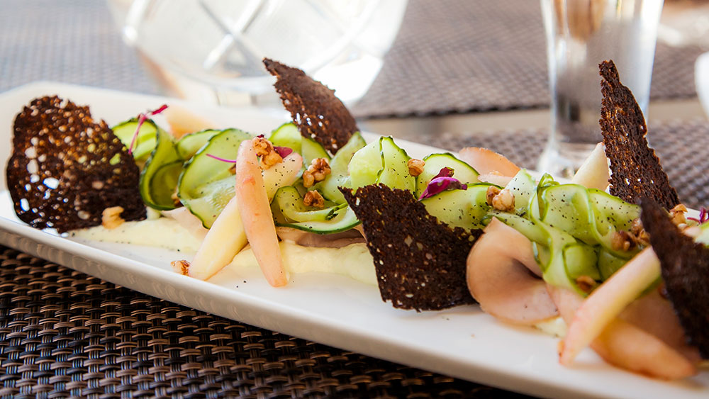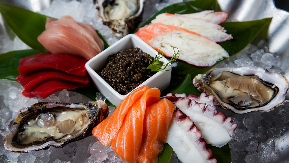 С началом летнего сезона меню Mercedes Bar обновилось, в первую очередь, блюдами из рыбы и морепродуктов. Теперь можно заказать сашими-сет (9950 руб.), где на лед выкладывается большой набор деликатесов - устрицы, лосось, тунец блюфин, краб, гребешок и черная икра. Из лосося готовят севиче (1050 руб.) и подают его с сезонным огурцом, тайским манго и соусом из апельсина и маракуйи. А вот слабосоленый вариант лосося подают с огурцом и сливочным хреном (750 руб.). Из краба готовят салат (1950 руб.), соединяя его с авокадо, огурцом, манго и соусом из сублимированного банана и юзу. На горячее предлагается стейк чилийского сибаса с соусом из лайма (2990 руб.) или лапша харусаме с крабом, зелеными овощами и кокосово-лаймовым соусом (2550 руб.).
