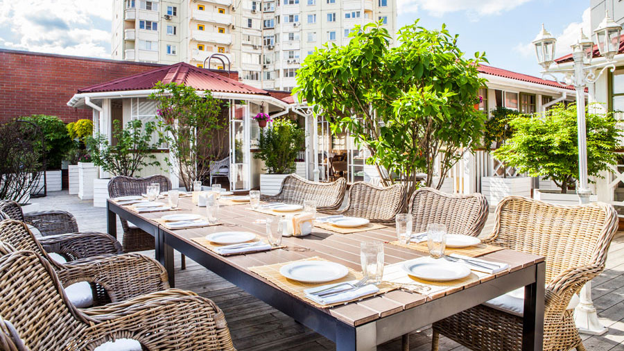 На крыше здания, в котором находится ресторан «Кувшин», каждый год с мая по октябрь встречает гостей летняя веранда. Общая вместимость веранды – 170 посадочных мест. Максимальное количество мест в одной беседке – 40, а минимальное – 6.