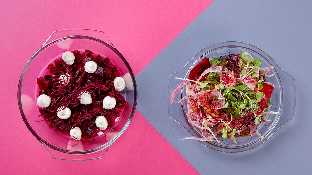 • Подкопченный козий сыр с салатом из хрустящих овощей и свеклы 480 р.