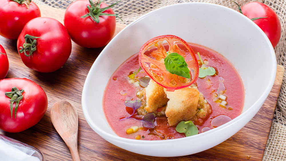 Так, гаспачо шеф-повар Мирко Дзаго готовит с тосканским салатом панцанелла и овощным тартаром, суп-пюре из зеленого горошка подает с мятой с крабовым мясом, а в суп из огурцов добавляет лосось и натуральный йогурт.