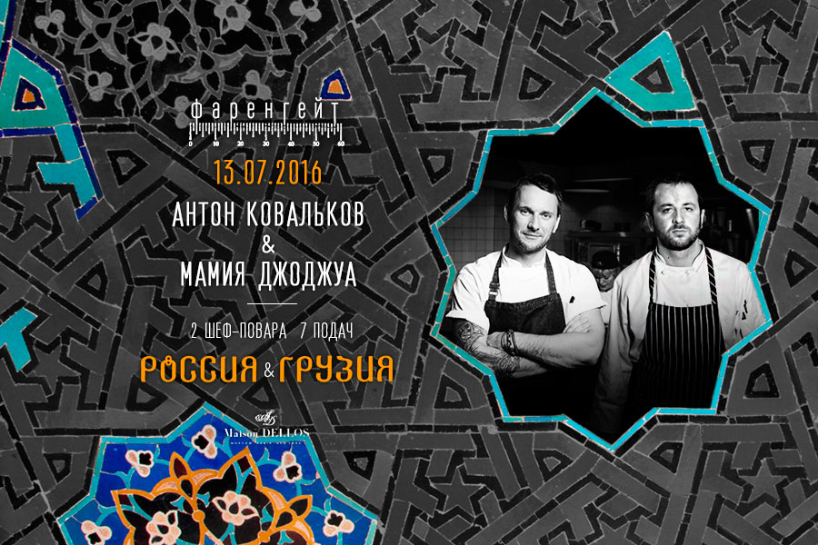 13 июля состоится ужин в 4 руки в ресторане «Фаренгейт». В этот вечер гостям ресторана будет представлен сет из 7 подач, приготовленный Антоном Ковальковым в тандеме с шеф-поваром из Грузии – Мамия Джоджуа.