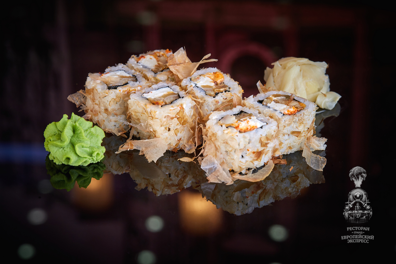 - роллы с авокадо (120 р.), лососем (180 р.), водорослями (120 р.), креветкой (195 р.), а также сложносочиненные варианты: «Филадельфию» в карамели с красной икрой (520 р.), «Канаду» с угрем и икрой лосося, сливочным сыром, авокадо, соусом «Унаги» и кунжутом (620 р.), «Калифорнию» с камчатским крабом, авокадо, огурцом, японским майонезом и соусом «Самбал» (640 р.) и многие другие. Разнообразие роллов в «Гранд Европейском Экспрессе» в этом месяце просто зашкалит.