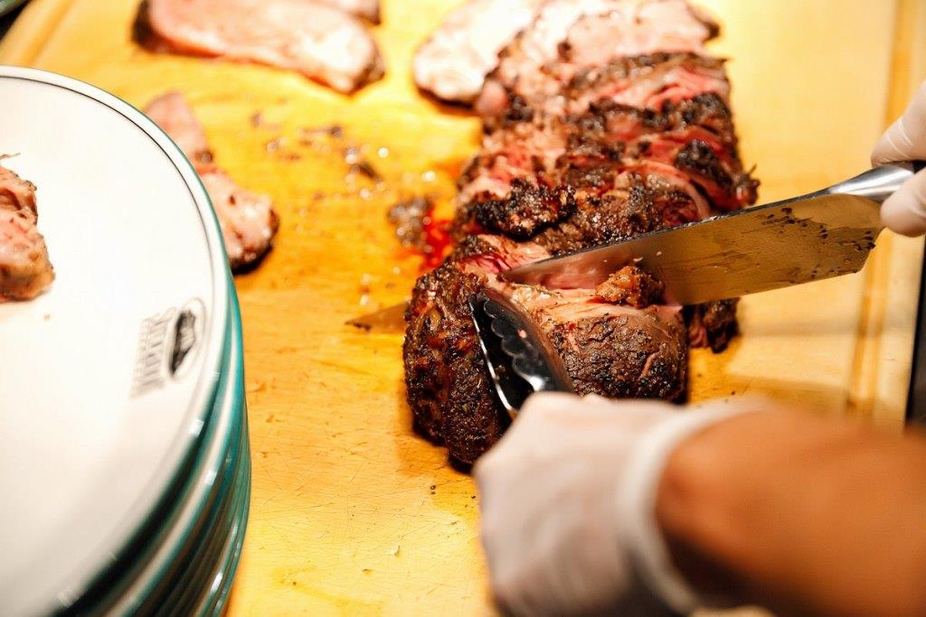 Дабы понять, что официант принес мясо правильной прожарки, гостю предлагается проверить его на соответствие степени прожарки заказанной. Стейк в таком случае разрезают посередине, поскольку по краям отруба толщина может быть меньше и мясо быстрее прожаривается.