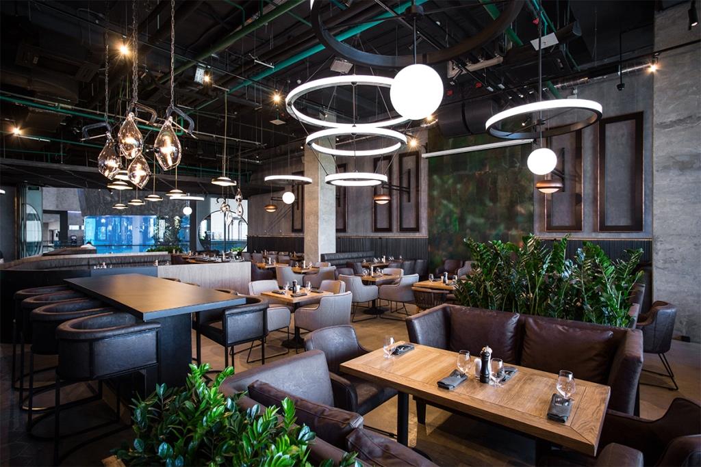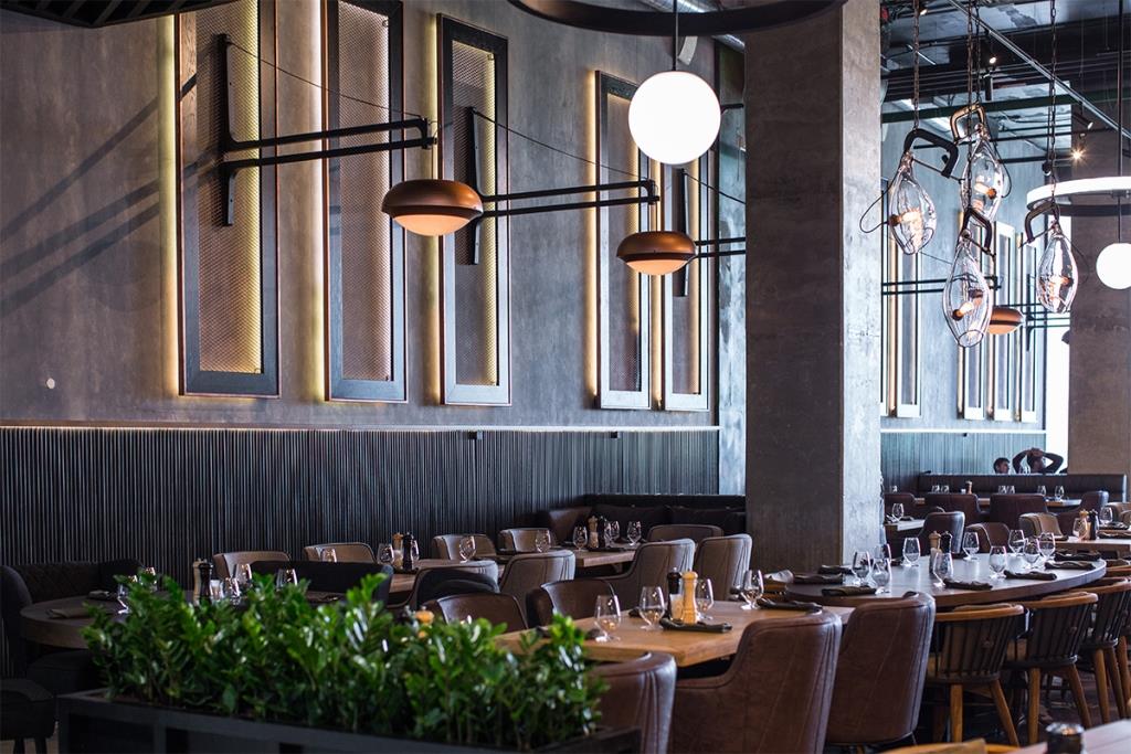 Интерьер ресторана гармонично вливается в приветливую композицию заведения – его продумывали до самых мелочей представители архитектурного бюро «Buroe» во главе с Екатериной Вальц. Просторный зал, открытая кухня, геометрично рассеивающийся свет, соседствующие рядом строгий металл и уютное дерево, живые растения и удобная мебель создают дружелюбную атмосферу, в которой приятно расслабиться и отдохнуть.