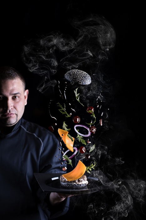 Меню, разработанное шеф-поваром Дмитрием Столбовым, полностью отвечает концепции ресторана и позиции содержит вполне космические: «Спейс Бургер» с угольным хлебом, луковым мармеладом и вишней в бальзамическом соусе, устрицы на лунных камнях и татаки с манговым соусом чатни. В коктейльной карте – более двух сотен авторских наименований: «Андромеду», «Пояс Ориона» и «Гравитацию» гостям миксуют в баре, выполненном в форме летающей тарелки.