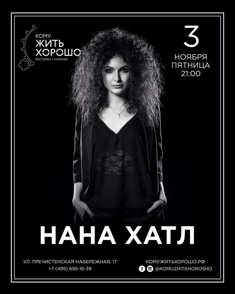 3 ноября, в пятницу в ресторане «Кому жить хорошо» состоится сольный концерт молодой певицы Наны Хатл. Она приобрела известность после выхода композиции Miss you, впоследствии ставшей главным саундтреком «Молодёжки». Также исполнительница запомнилась зрителям своими яркими выступлениями на музыкальном телепроекте «Голос». На пятничном концерте Нана исполнит песни, музыку и тексты к которым она написала сама. В них сочетаются оригинальные мотивы и проникновенные слова, берущие за душу. Дополнят вечер блюда из меню, тщательно подобранного шеф-поваром Алексеем Желновым, который использует в своих кулинарных экспериментах такие необычные ингредиенты, как водяной каштан, бамбук и икра из морских водорослей. Винная карта, разработанная сомелье Максимом Дерюшевым, тоже сочетает в себе чувство стиля и отличный вкус. А особенную изюминку добавит потрясающий вид на Москву-реку, который открывается из панорамных окон ресторана.