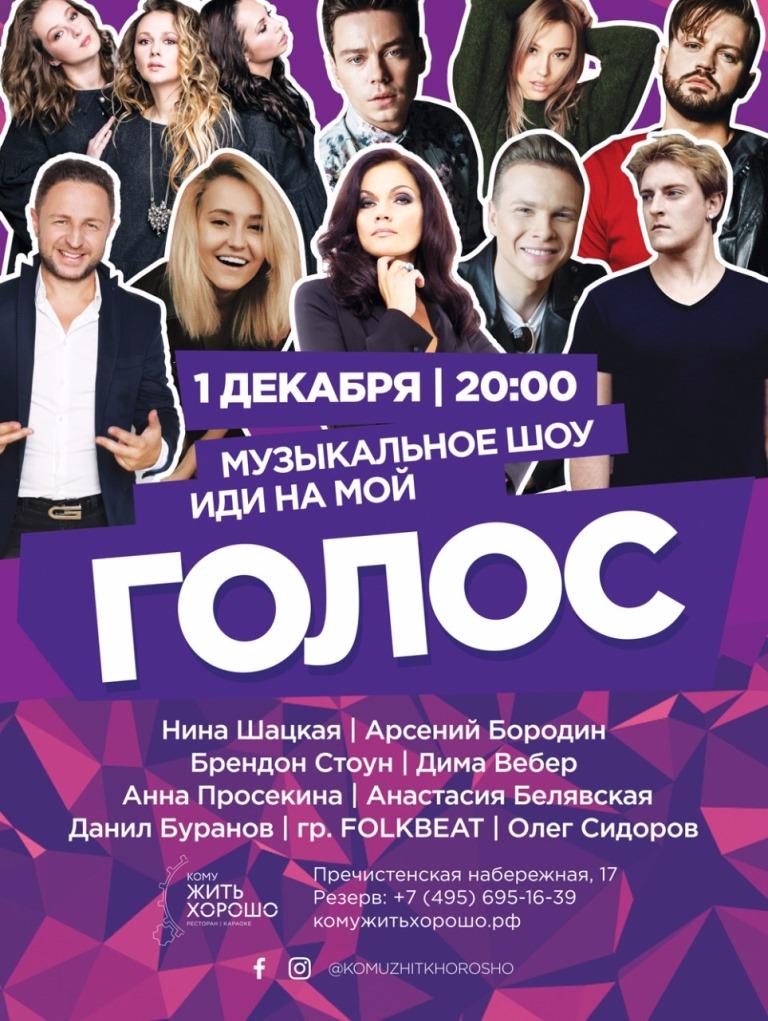 1 декабря в ресторане «Кому ЖИТЬ ХОРОШО» выступят конкурсанты шестого сезона проекта «Голос» из команды Димы Билана. В программу концерта войдут самые яркие номера, которые артисты исполнят в сопровождении живой музыки.